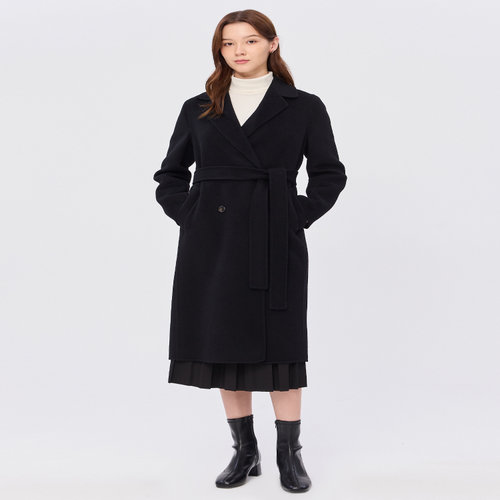 헤지스 여성 [스테디셀러][울100] 블랙 더블버튼 벨티드 핸드메이드 롱 코트 (WSCO4DC02BK)