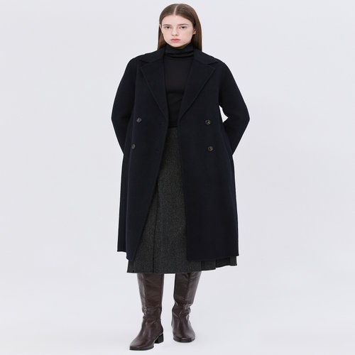 헤지스 여성 [스테디셀러][울100] 네이비 더블버튼 벨티드 핸드메이드 롱 코트 (WSCO4DC02N2)