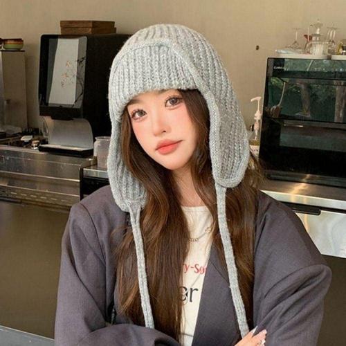 겨울 귀덮개 모자 여성 니트 귀달이 방한 WFLZ1OQ