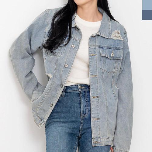 [하프클럽/]헤짐 워싱 캐주얼 패션 데님자켓 청자켓 스타일코디