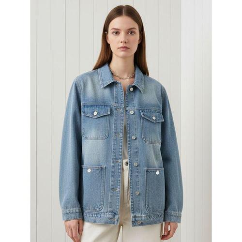 여성 청자켓 빈티지 후드 포켓 워싱 데님 자켓