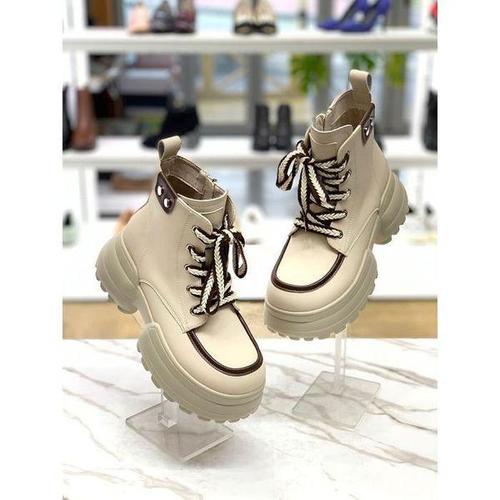 여성 통굽 레이스업 워커 끈 부츠 키높이 미들부츠