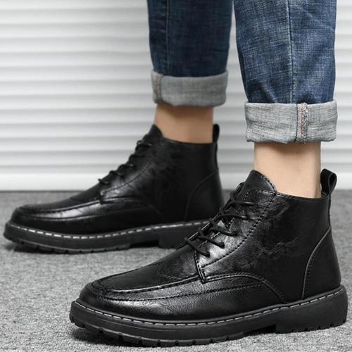 남자 레더 끈있는 발목부츠 클래식 캐쥬얼 워커