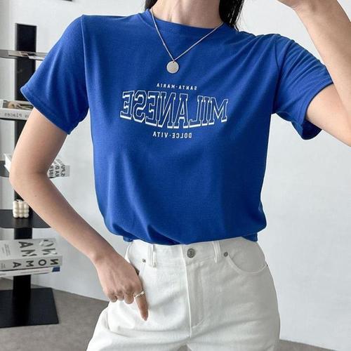 [다잇템]여자 레터링반팔 SS 영어 파란색 워터밤 티셔츠 (32201141A)