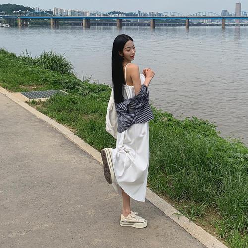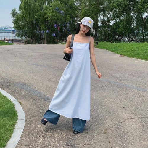 [다잇템]여자 무드 내추럴 면원단 서스펜더 롱원피스
