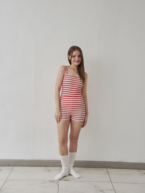 [미니마린] 골지 스트라이프 사각팬티 원피스 수영복_핑크