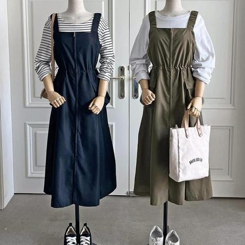 J2K 멜빵치마 롱 원피스 코디 겉옷 외출 데이트 나들이 패션