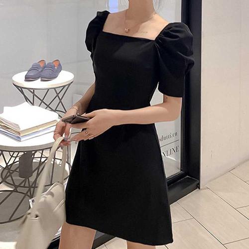 블랙 미니 드레스 여자 오프숄더 스퀘어넥 벌룬 클럽 WC79C0A