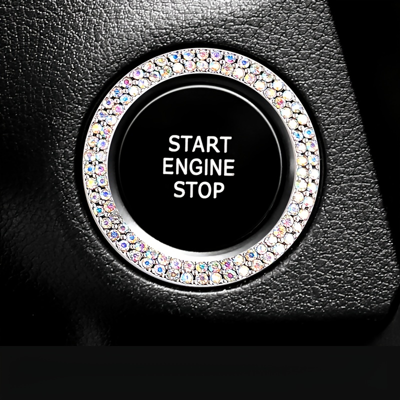 TEMU 실험실에서 배양된 자동차 시동 버튼 장식 링 | 이중 줄무늬 반짝이는 인레이 | 엔진 푸시/스타트 키 외부 원형 장식 | 반짝이는 내부 액세서리 | 스타일리시한 차량 액센트 | 일곱 가지 색상 제공