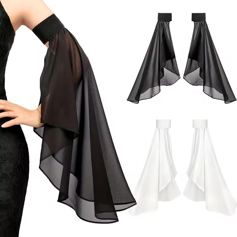 1 쌍 여성 긴 Tulle Sleeves Sunscreen 분리형 장식 얇은 쉬폰 팔 커버 장갑 웨딩 드레스 의상 액세서리