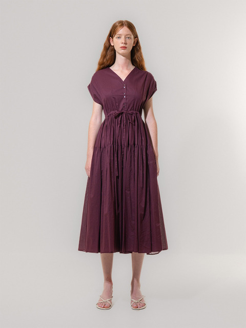 [에민앤폴] 버건디 셔링 웨이스트 드레스