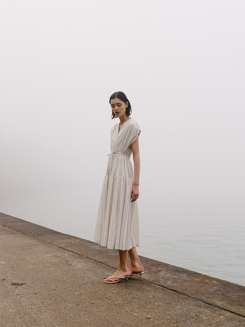 [에민앤폴] 스트라이프 셔링 웨이스트 드레스