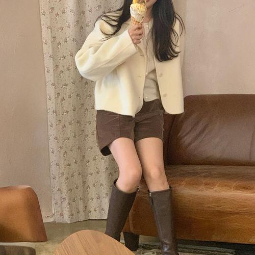 웨이퍼 코트 싱글 버튼 하프코트 아우터
