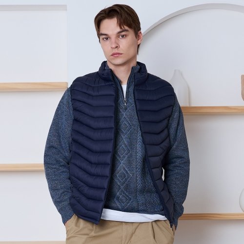 남자 고밀도 웰론 하이넥 경량 조끼패딩 DD-VEP-K4WMV901-네이비