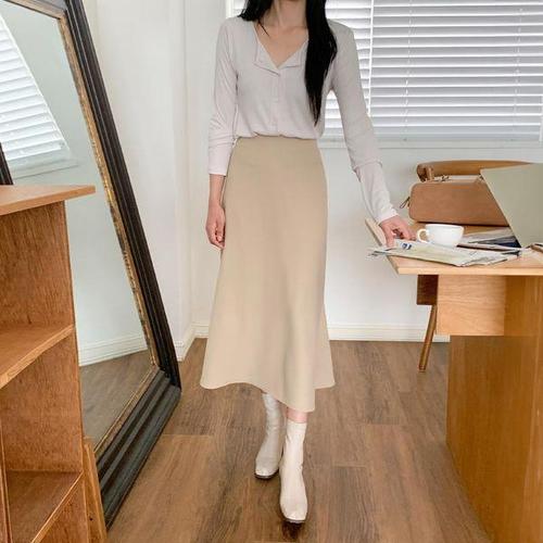 [다잇템]여자 머메이드핏 롱 폴리 백밴딩 편한 스커트