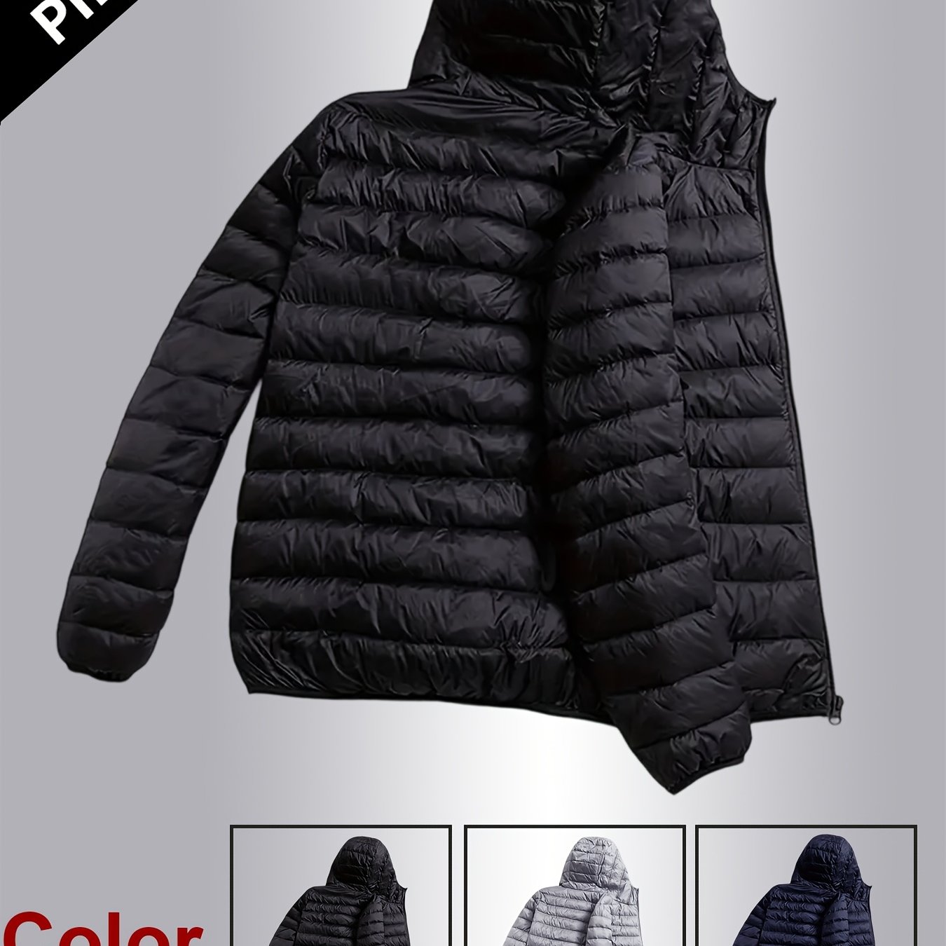 TEMU 남성용 겨울 따뜻한 후드 재킷, 지퍼 포켓, 후드, 루즈핏이 있는 방풍 겨울 코트 - 야외 활동, 러닝, 낚시 및 캐주얼 웨어에 적합한 단열 겉옷 - 단색 디자인 골지 재킷
