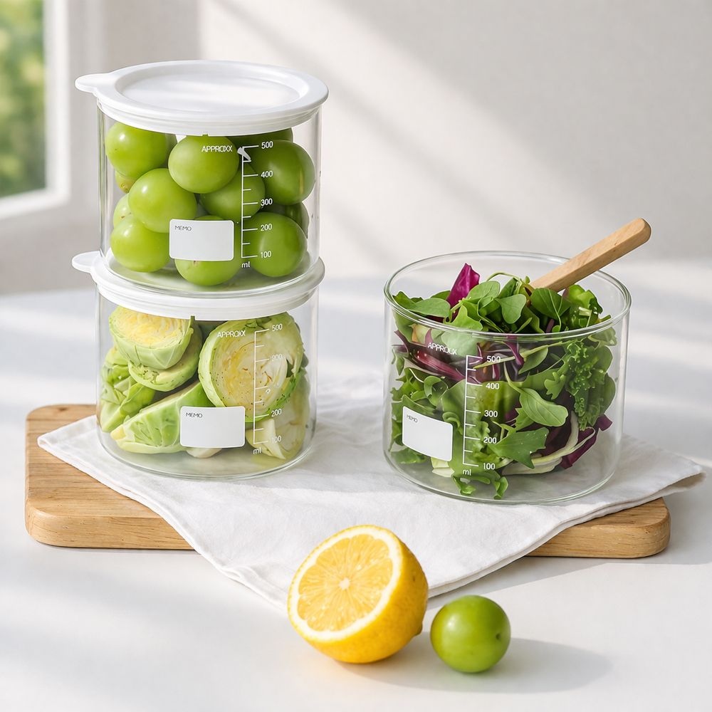 듀오 컨테이너 내열유리 밀폐용기 500ml / 밀프렙 샐러드보틀 유리병 캐니스터