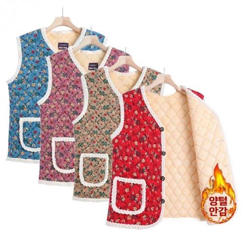[오너클랜]인기상품 겨울용 보온 융털 안감 조끼 할머니 어머니 김장 꽃무늬 [WFLLR13_260305]