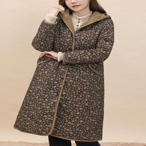 [디얼마미][디얼마미] 폭닥 후드 융털 본딩 롱 점퍼 /마담 미시 중년 여성 빅사이즈 40대 50대