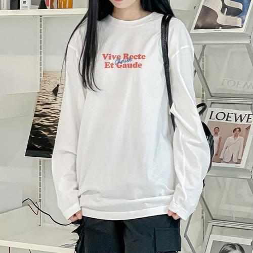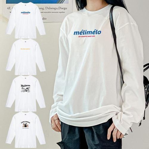 [험블][험블] 여자 레터링 티셔츠 면 롱 이너 루즈핏 긴팔 (11444140A)