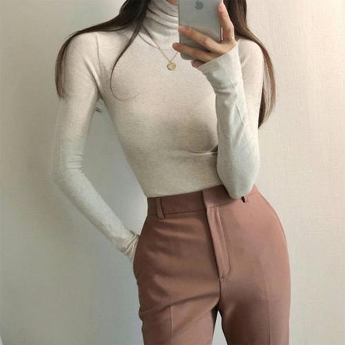 [다잇템]여자 하이넥 이너핏 베이직 슬림 편한 티셔츠 (19767827A)
