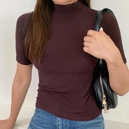 슬림핏 골지 반폴라 니트 티셔츠 데일리 이너탑