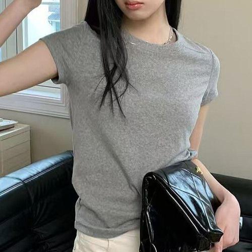 꾸안꾸 세미크롭 슬림핏 반팔티 이너티 여성 데일리룩 WFHVY1N