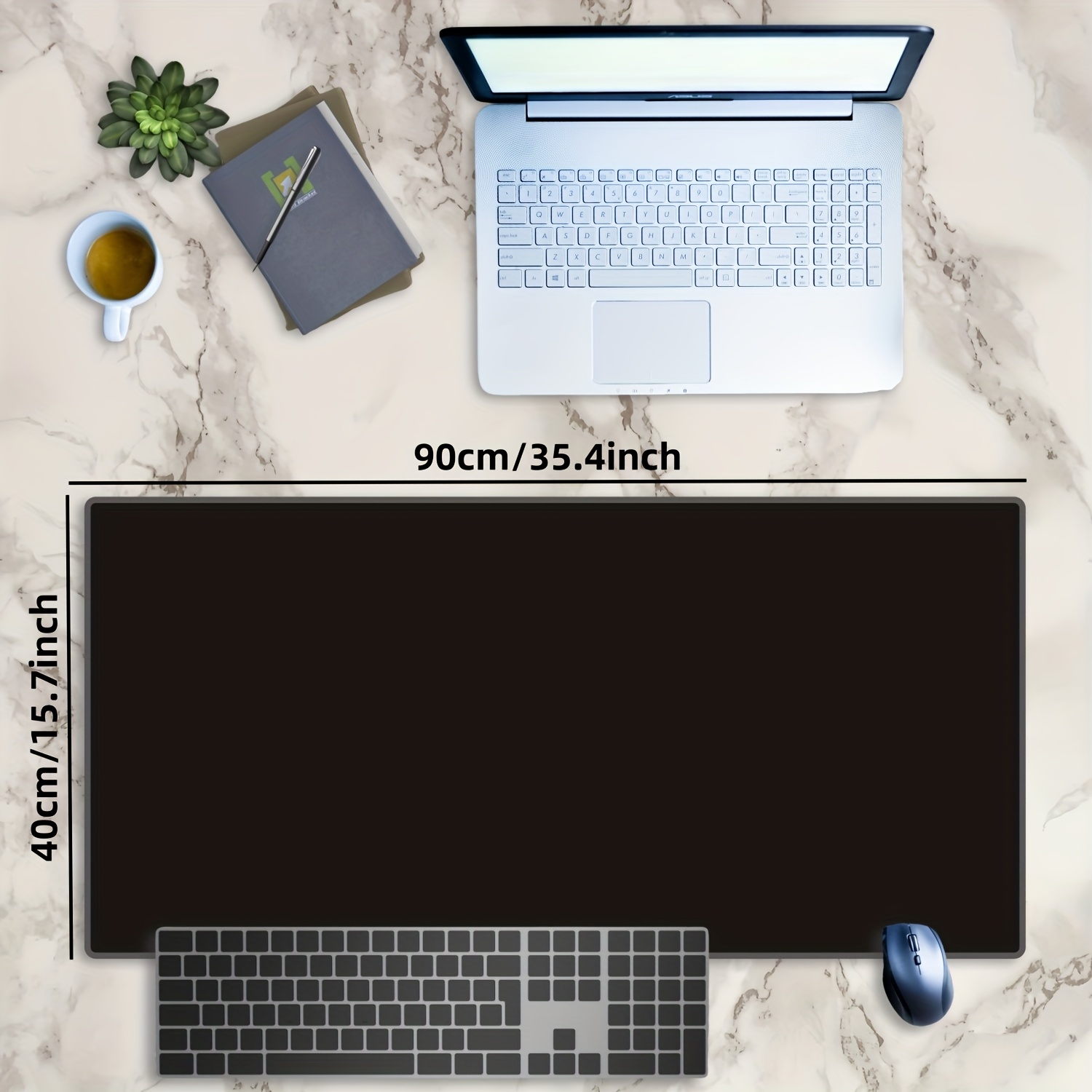 TEMU 클래식 대형 블랙 마우스 패드 - 미끄럼 방지 고무 베이스, 내구성이 뛰어나고 심미적인 스티치 엣지, 사무실 및 가정 장식에 적합, 남녀 모두에게 적합한 스타일리시한 디자인, 데스크 액세서리, 고무 마우스 패드