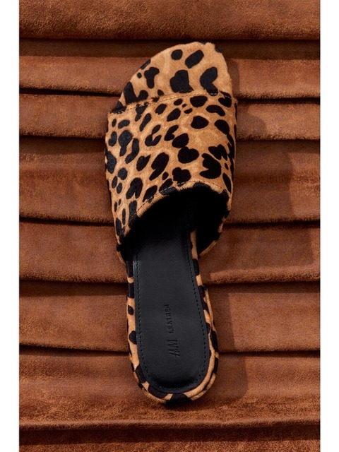 [에이치엔엠] 레더 플랫 슈즈 다크 브라운/이미테이션 레오파드 1319025001