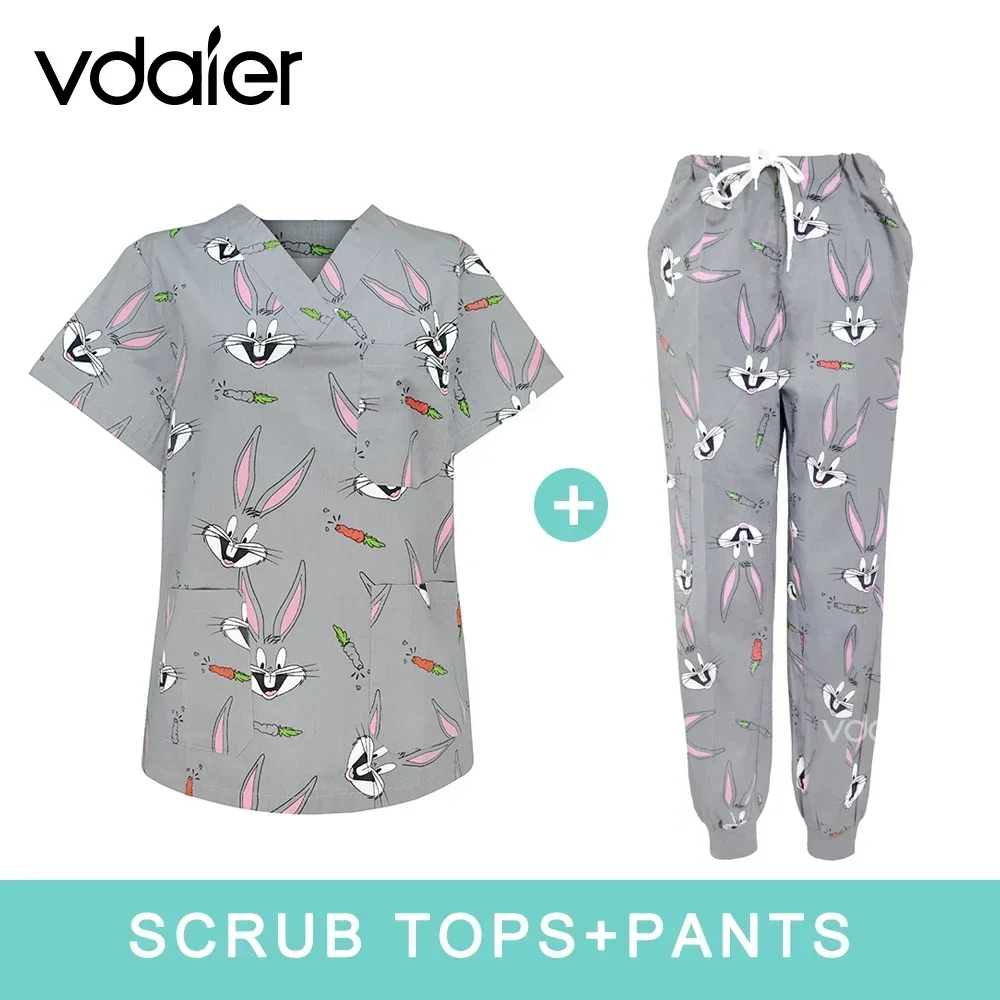 면 인쇄 수술 세트 애완 동물 클리닉 치과 소아과 의사 미용 병원 유니폼 스크럽 세트 작업복 의료복