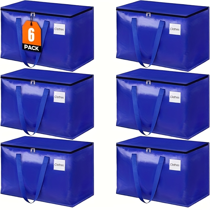 TEMU 6개 대형 이사 가방 세트, 90L 용량, 지퍼형 방수 의류 보관 가방, 의류, 여행, 캠핑, 공구 보관, 가정 정리, 통에 뚜껑이 있는 보관용, 담요, 침구, 속옷, 튼튼한 패브릭 정리함 박스에 적합