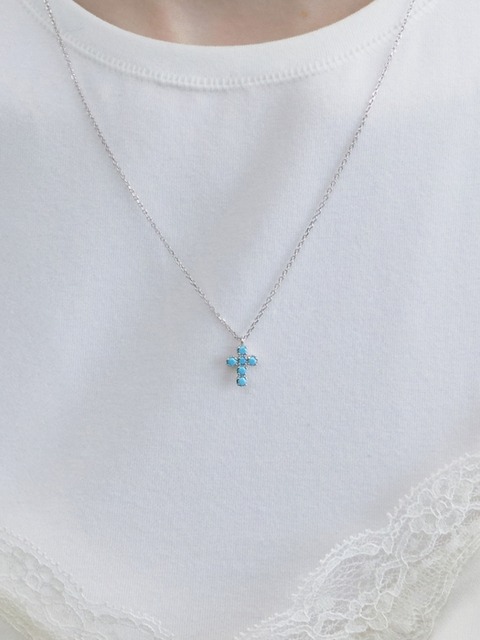 [바이이에르] 바이그레인 실버 터쿼이즈 크로스 목걸이 (White) BH7N63708W9500