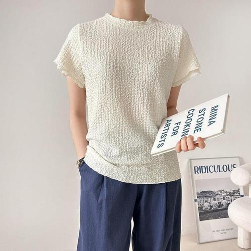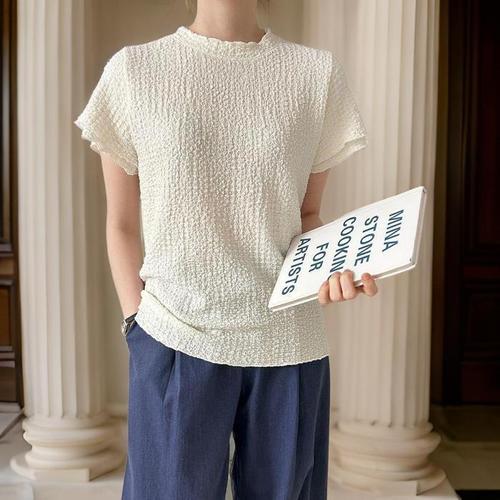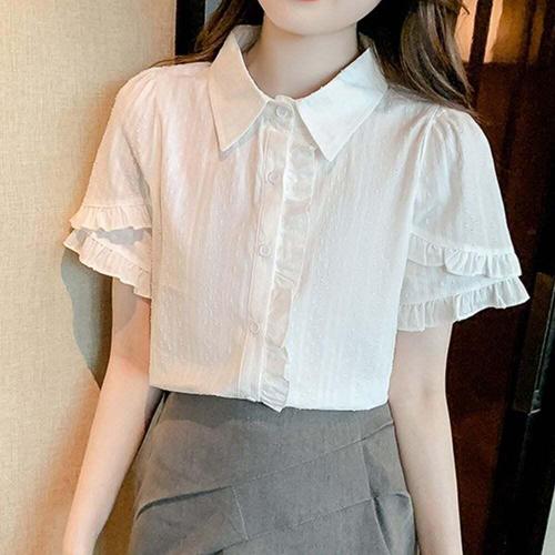 [셀럽하우스]여자 QONC5330 프릴 이중소매 트렌드 반팔 블라우스 데일리 여
