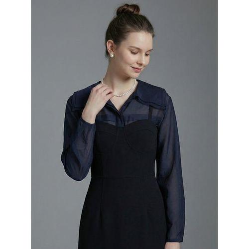 [샵앤]국산 여성 오피스 하객룩 이중 카라 블라우스 SIU-WBL-21016-네이비