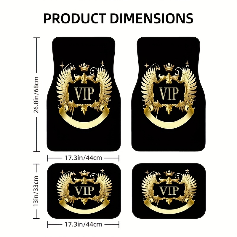 TEMU 트렌디한 VIP 패턴 프린트 4피스 자동차 바닥매트 세트, 미끄럼 방지 뒷면, 세척 용이, 자동차 내부 액세서리, 대부분의 차량 모델에 적합