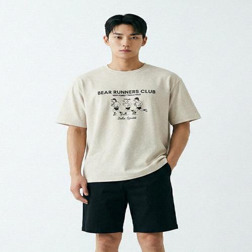 [이지바이]투엘라 남녀공용 러닝베어스 캐주얼 그래픽 쾌적한 소로나 라운드 반팔 티셔츠(U7SS28)