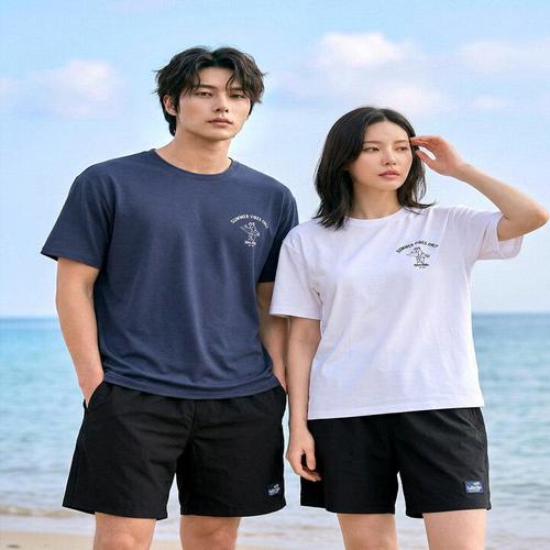 [이지바이]투엘라 남녀공용 서핑베어 데일리 캐주얼 그래픽 쾌적한 소로나 라운드 반팔 티셔츠(U7SS26)