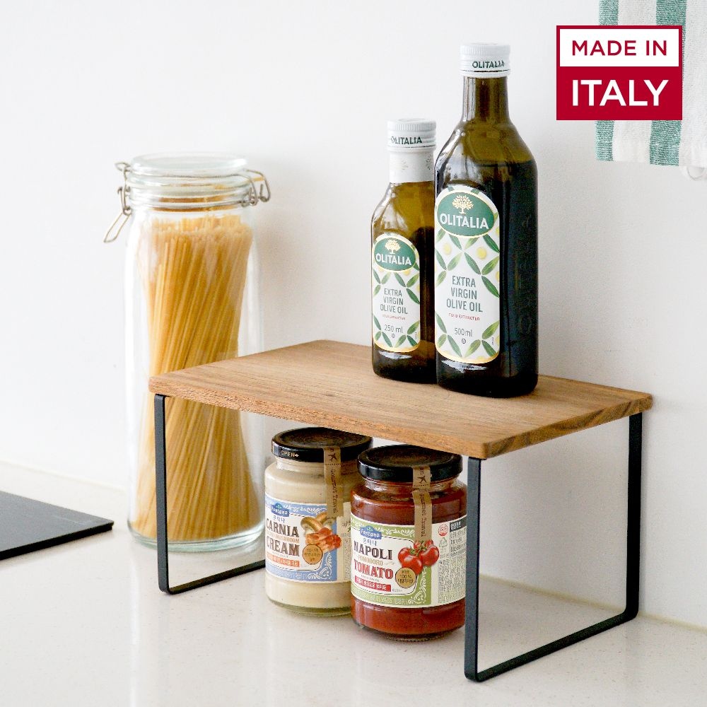 이태리 메탈텍스 아카시아 우드 요크 라바 1단 브릿지 주방 그릇 정리 선반