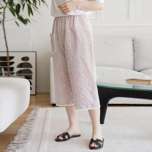 여성 편한 여름 인견 8부 꽃무늬 파자마 잠옷 바지 하의