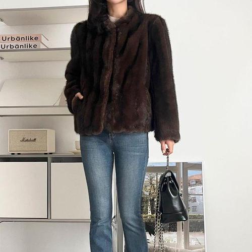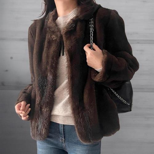 [신상오픈런]여성 후크 겨울 시즌 인조밍크 물결 패턴 소프트 퍼 자켓