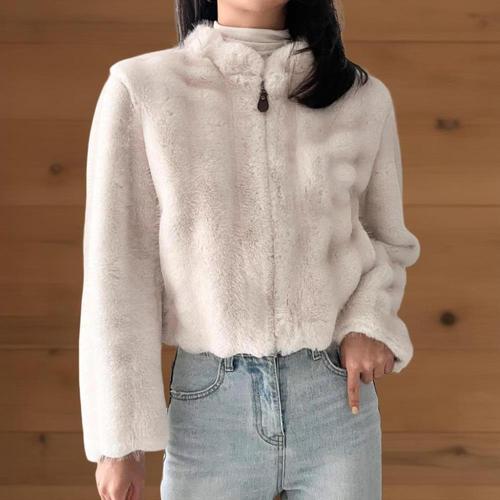 AOKADA 여성 스탠드 컬러 털자켓 페이크퍼 여우털 모피 코트