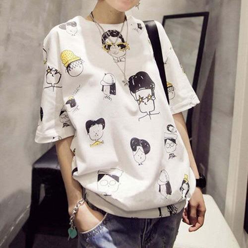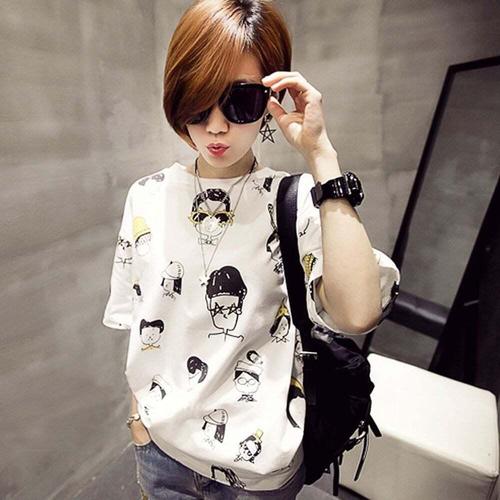 [셀럽하우스]캐릭터 YNQZ6881 일러스트 티셔츠 캐주얼룩 라운드넥 심플