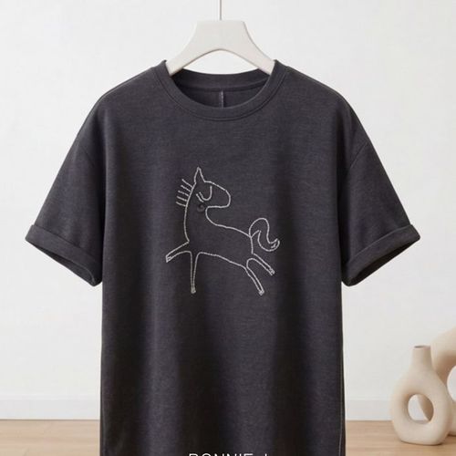 보니제이 / 큐빅 말 일러스트 반팔 티셔츠 루즈핏 면티 여성 여름