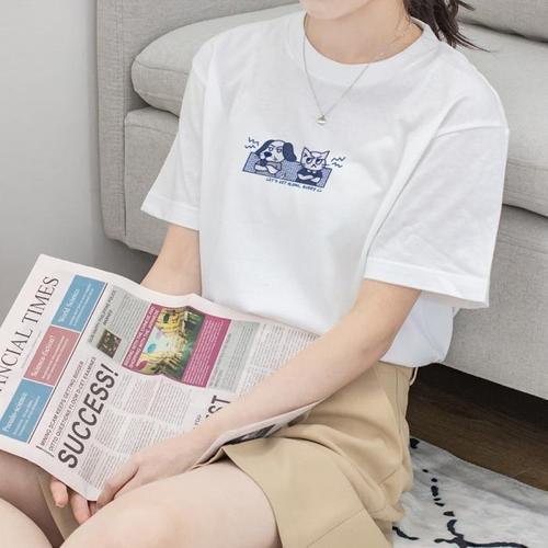 [험블][험블] 팬케익 프린팅 루즈핏 여성 기본 반팔티셔츠 (8746572A)