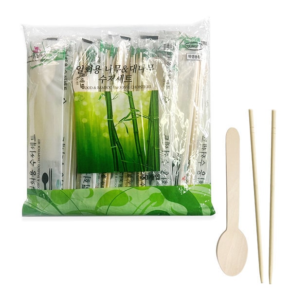 일회용 나무 숟가락 대나무 젓가락 수저 세트 50개입