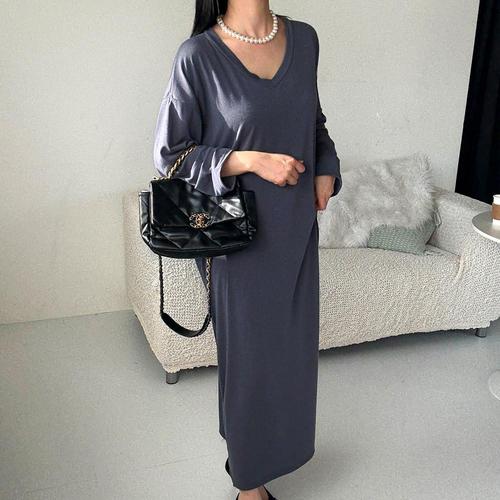 [보리보리/보리맘]린넨 비비V 루즈핏 롱 원피스 리넨 코튼 직장인 임부복 WM403