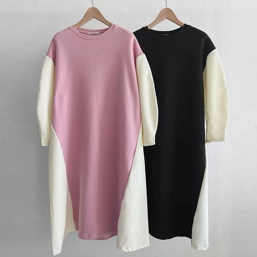 [보리보리/보리맘]니니 배색 소매 루즈핏 롱 원피스