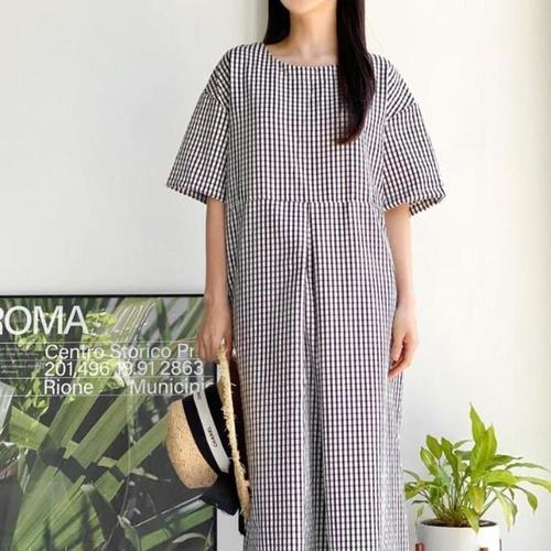 [다잇템]여자 박시핏 후레아 격자 임산부 SS 롱원피스 (15355145A)