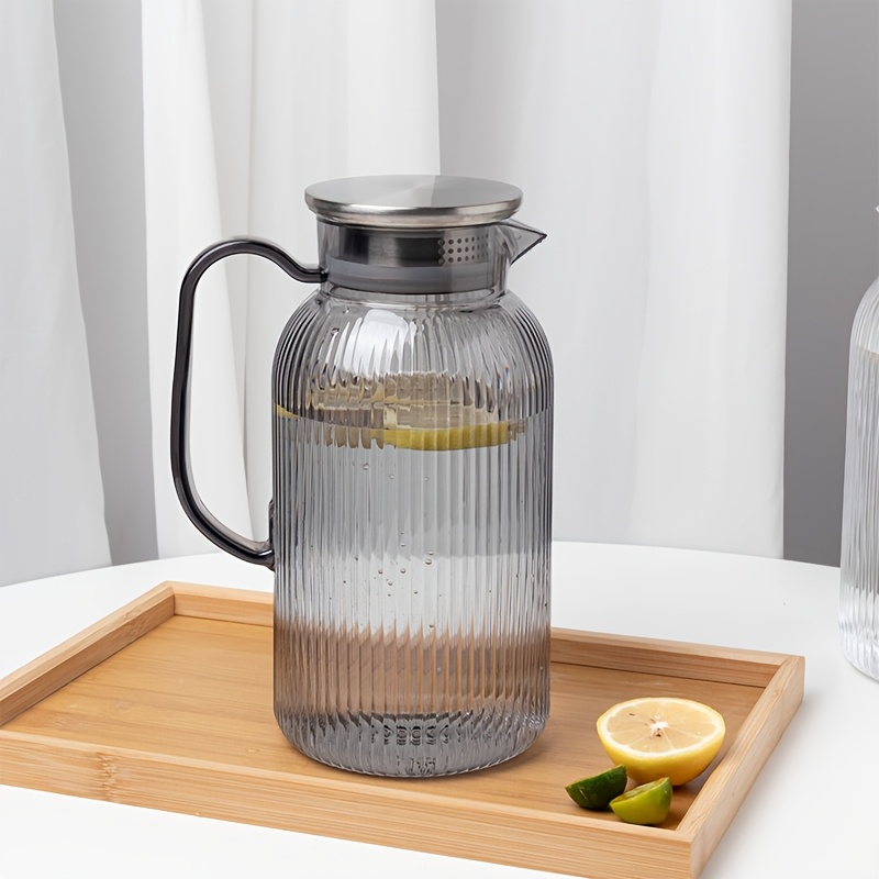 TEMU 1pc 2000ml 대용량 물병 - 뜨거운 및 차가운 음료를 위한 내구성 있는 플라스틱 음료 주그, 냉장고에 적합한 차가운 물 디스펜서, 주스, 아이스 티, 우유에 이상적 - 가정, 야외, 학교로 돌아가기 및 독립기념일을 위한 휴대용, 야외 수분 보충, 투명한 디자인, 튼튼한 손잡이 디자인