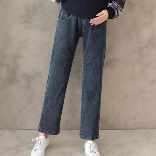 [옷자락]여성 임신복 면 신축성 좋은 일자 워싱 청바지